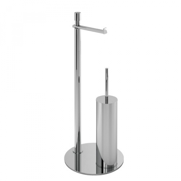 Piantana porta scopino e porta rotolo in acciaioMISURE: L. 19 x H.57 Ø 19