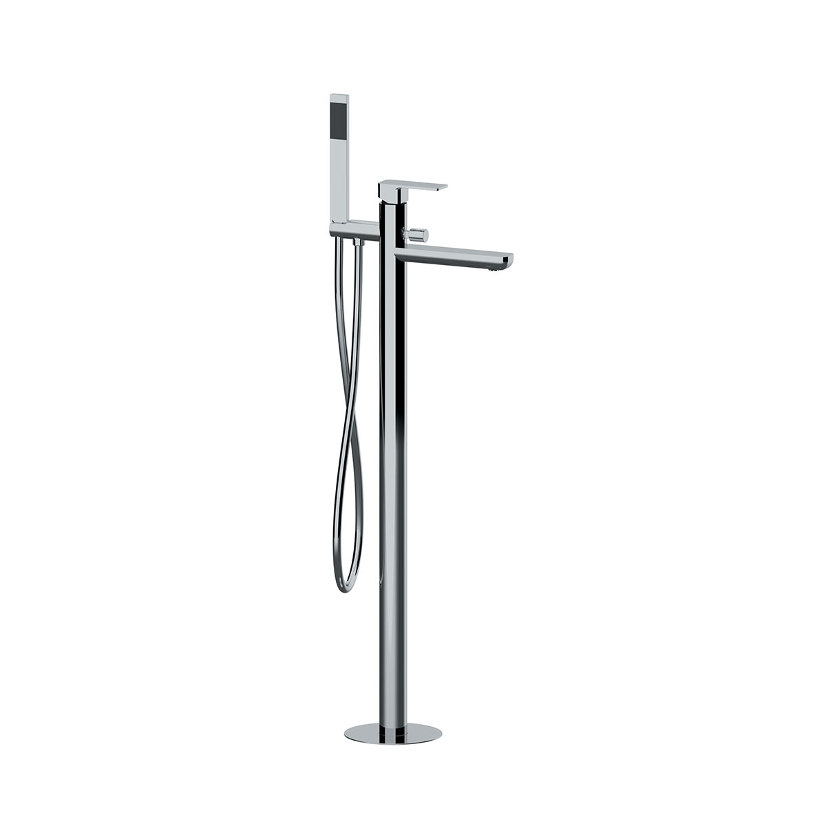 Miscelatore monocomando vasca da pavimento, con deviatore e kit doccia, doccetta in ottone.