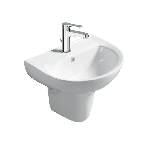 Lavabo 54,5 cm per rubinetteria monoforo abbinabile a semicolonna.