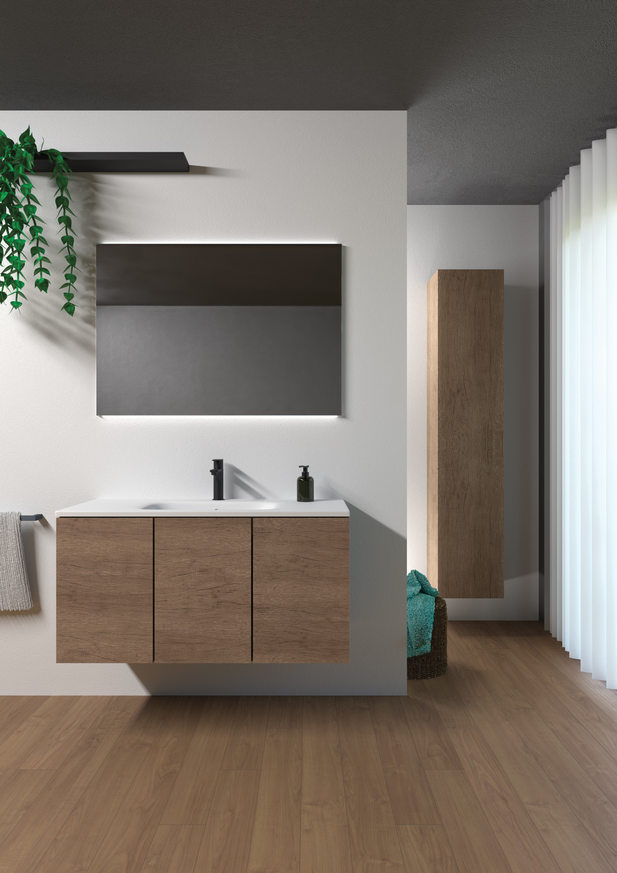 MOB274 Mobile sospeso LEAF 100 - L.100xH.50xP.45,5 portalavabo a 3 ante con apertura a pressione, senza top olmo naturale