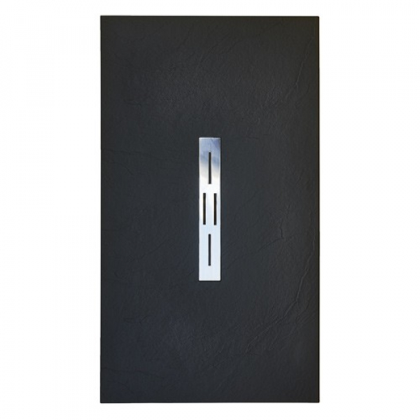 Il piatto ha una trama molto simile all' ardesia naturale e completamente antiscivolo (classe 3); completo di piletta doccia sifonata DM 90 con scarico orizzontale e griglia in acciaio inox 316 rettangolare.